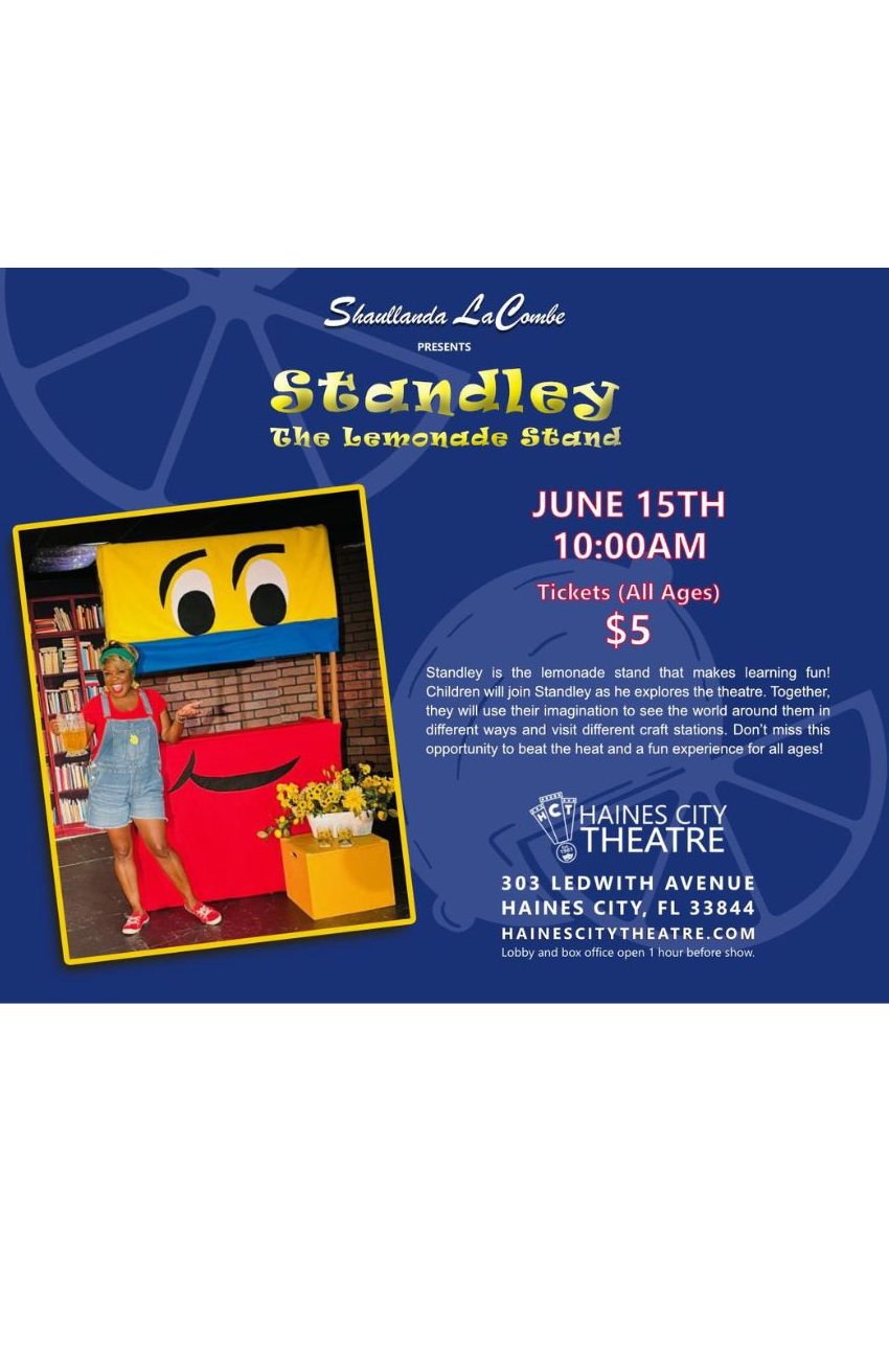 Standley is the lemonade stand that makes learning fun! Kids join Standley as he explores the theatre, and we will use our imaginations to see the world around us differently. Then, after your playdate with Standley, Mrs. Shaullanda will guide kids through learning and craft stations. Fun for kids of all ages!